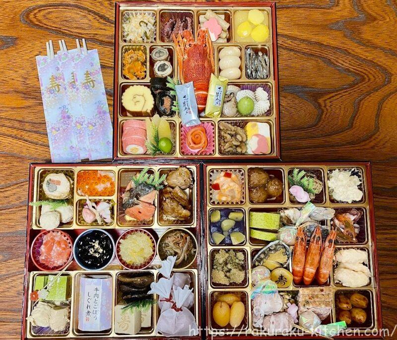 2023年のおせちは割烹料亭千賀監修「福寿千」(冷蔵 和風 三段重 60品 4~5人前)を注文しました。実際に届いた状態や解凍した状態、味などの感想を紹介します。