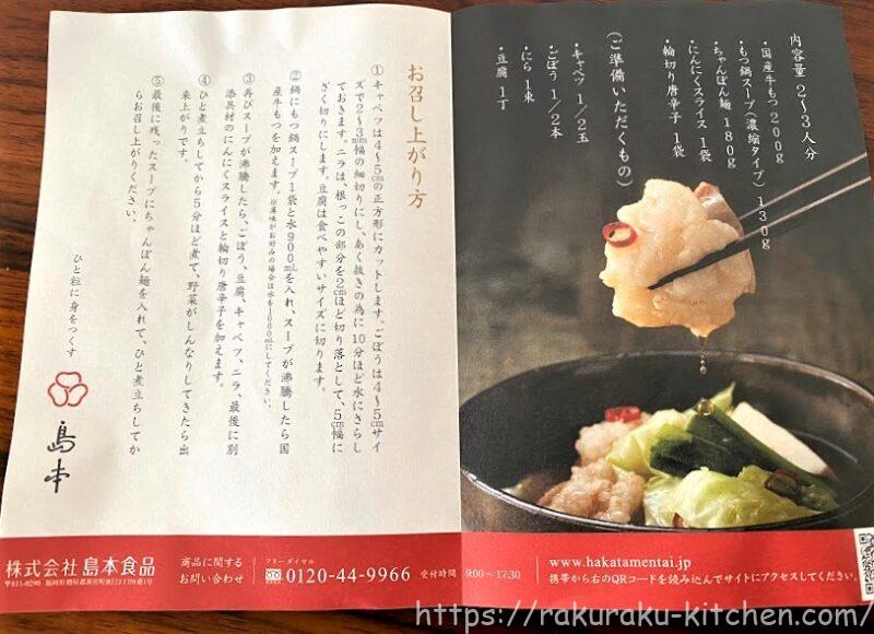 >>博多もつ鍋の詳細はこちら【島本公式サイト】