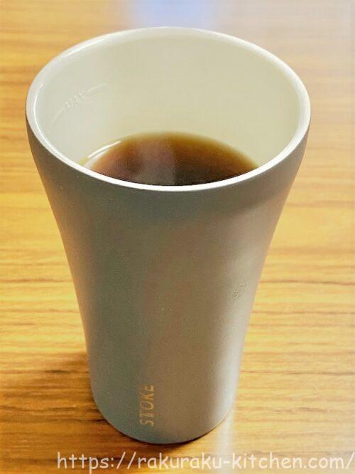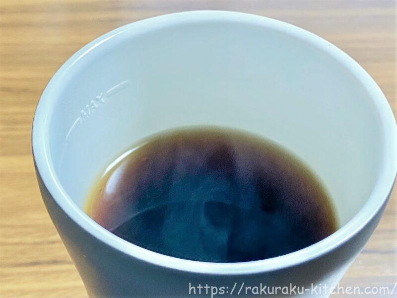 ホットコーヒーを淹れてふたをして、テレワークをしていますが、30分放置しても温度をキープしており、香りもきちんと残っています。