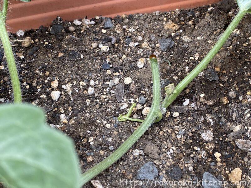 6/3に購入した小玉スイカの「ピノガール」は摘心後も子づるが全然伸びてきません。摘心は1週間くらい前にしました。