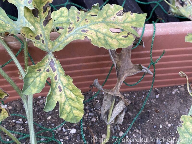 【悲報】つる枯病で終了?(6月29日/紅小玉)