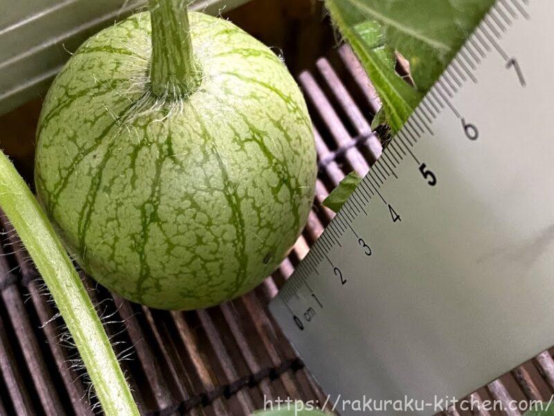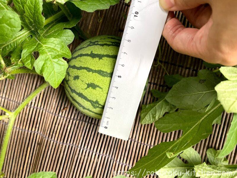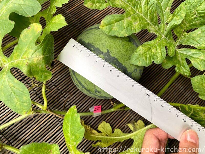 大玉スイカは45~50日、小玉スイカは35~40日が目安だそうです。