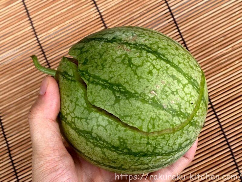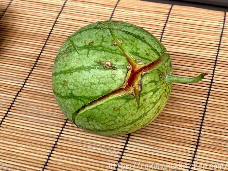 朝見たときには割れていなかったのすが、10時頃に見たら大玉スイカが割れていました。