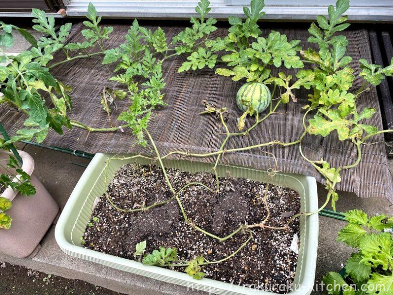 プランターには小玉スイカが1個残っています。明日収穫予定です。