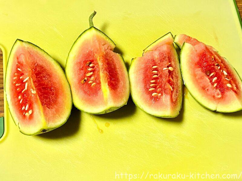 半日冷蔵庫で冷やして、4等分にカットしました。