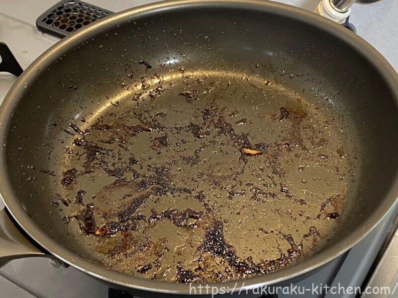 スルットしているので食材がフライパンにこびりついて取れなくなったことは今のところありませんが、絡めたソースを焦がしてしまったことがあります。