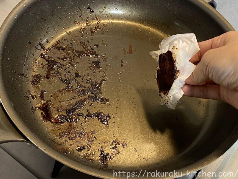 こびりついているようにも見えますが、ティッシュやキッチンペーパーで軽く拭くだけで汚れはほぼ取れました。