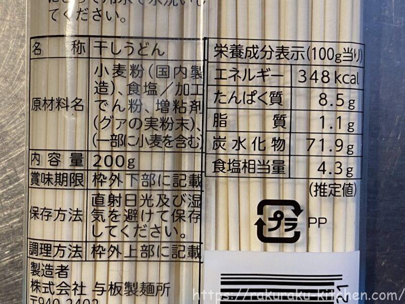 原材料名小麦粉(国内製造)、食塩、加工でんぷん、増粘剤(グアの実粉末)