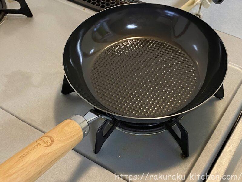 ※鉄フライパンを空焼きするのは酸化鉄の皮膜を作るためなので、シリコーン塗装されたフライパンには空焼きは不要