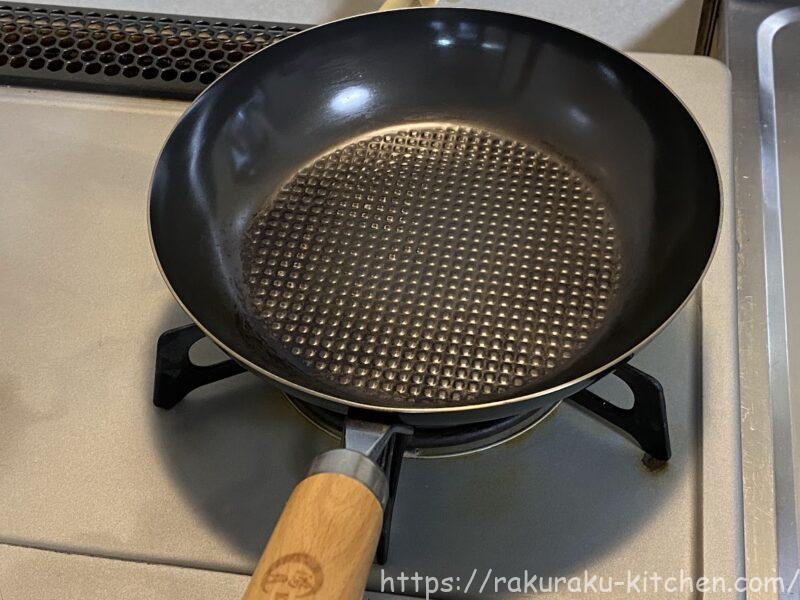 今回紹介するのはこちらのフライパン。IH・ガス火対応の鉄製フライパンです。