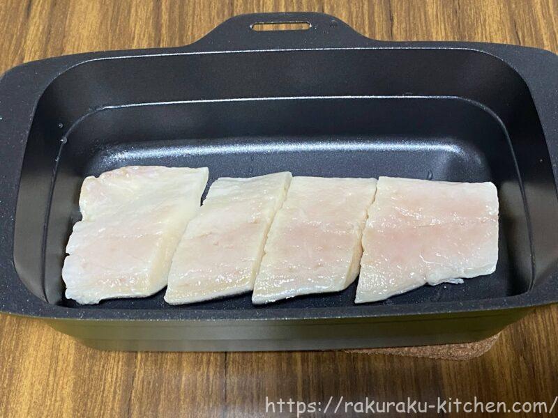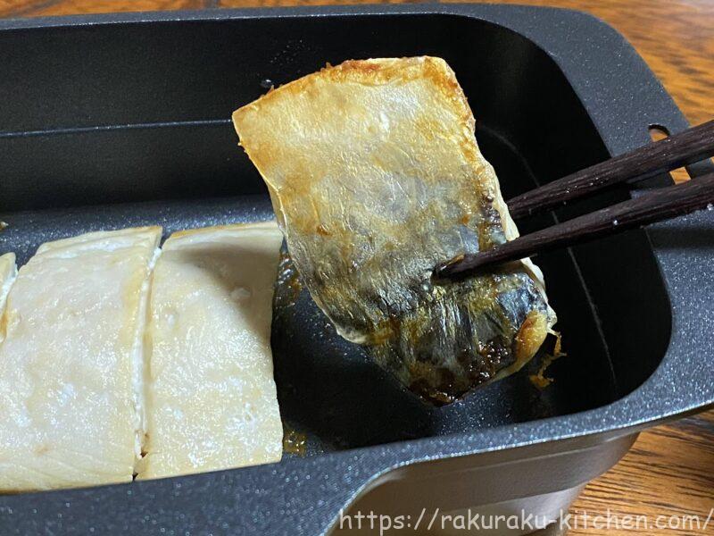 フッ素加工されているのでへばりつくことはなく、適度な焼き色がついて皮はパリッと、身はふっくらと美味しく焼けました。