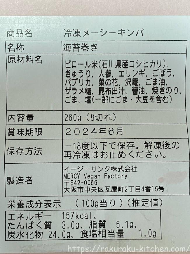 楽天市場で大人気のメーシーヴィーガンファクトリー(MERCY Vegan Factory)のヴィーガンキンパをお取り寄せしてみました。