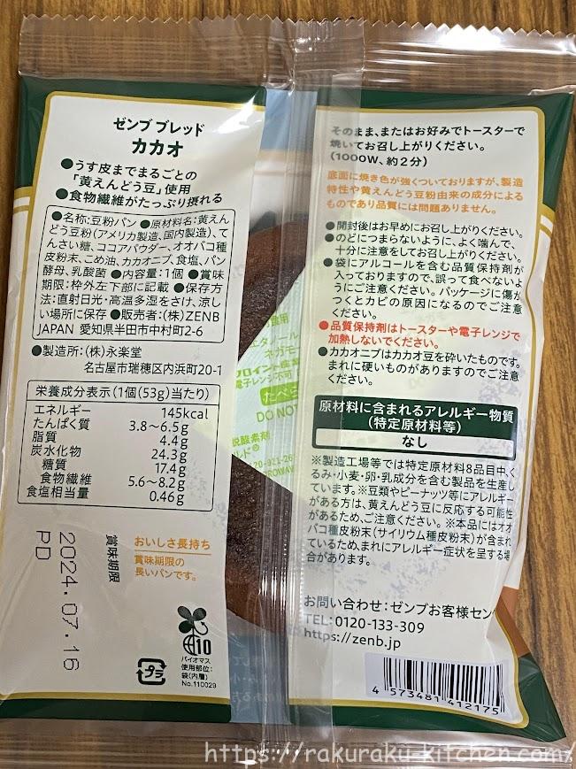 原材料名:黄えんどう豆粉(アメリカ製造、国内製造)、てんさい糖、ココアパウダー、オオバコ種皮粉末、こめ油、カカオニブ、食塩、パン酵母、乳酸菌